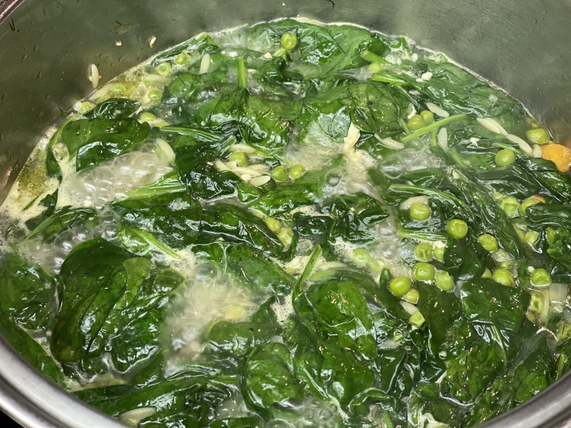 - Stir in peas, spinach and dill; return to a boil. Reduce heat; simmer, uncovered, until orzo is tender, 3-4 minutes. Stir in lemon juice. If desired, top each serving with coarsely ground pepper.