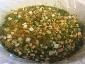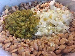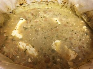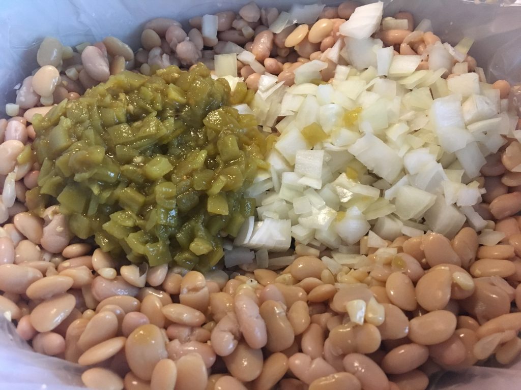 - Place chicken on bottom of crockpot, sprinkle seasonings over chicken. Add beans, garlic, onion, corn, and chiles.