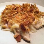 In a large bowl mix chicken, ham, pasta, gravy and 1 cup of Swiss cheese. Spread evenly in baking dish.